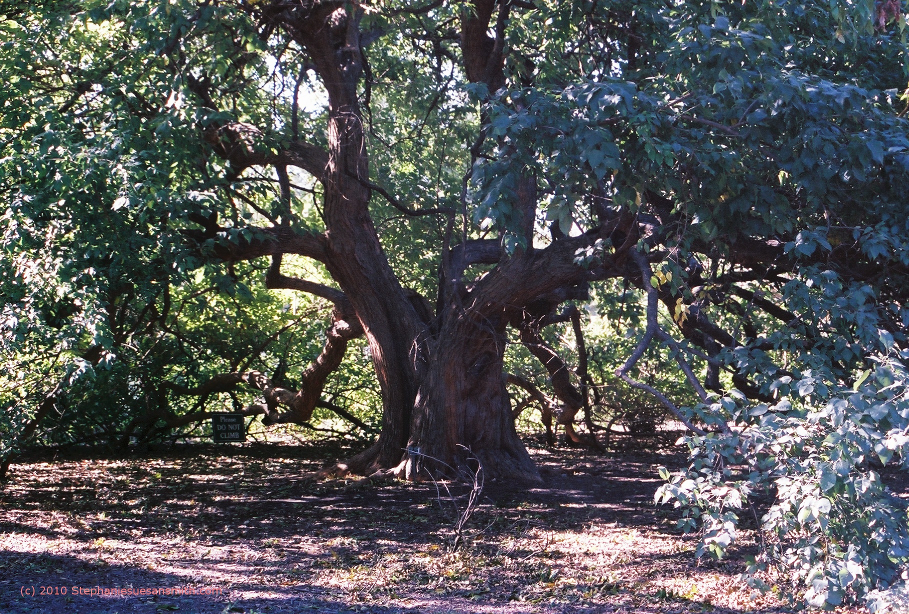 This is a huge old Bois D’arc tree at the Dallas Arboretum. These trees are also referred to as Osage orange trees. They were used by Indians to make bows out of. Early settlers used them as living fences. There are trees all over the East Texas landscape that form old fence lines. They have wicked thorns along the new growth. The settlers kept them pruned to form long hedges. The scientific name is Maclura pomifera. Growing up, I called these trees horse apple trees.